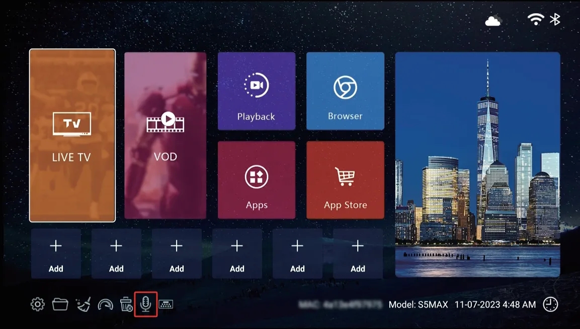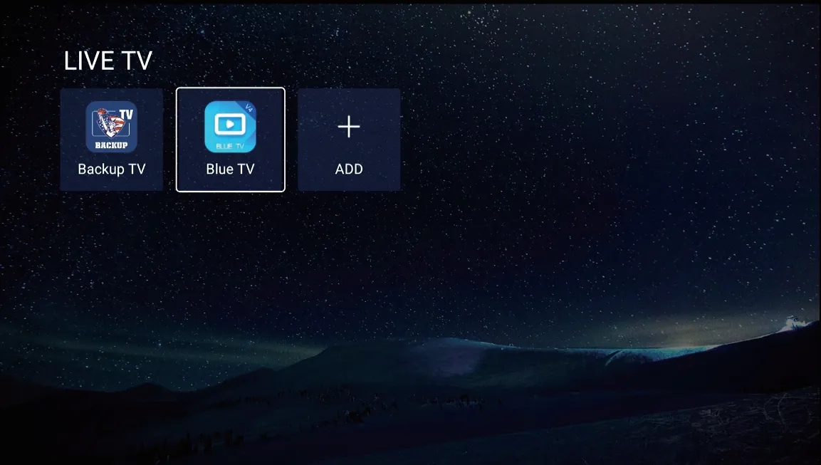 Return to the home screen, arrow to LIVE TV, and add the “Blue TV” and “Backup TV” in the category. The same operation for the Blue VOD and Playback
