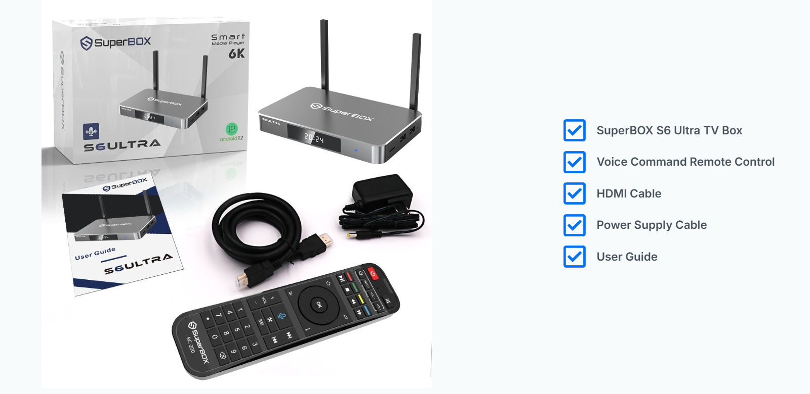 - Advanced Voice Command: You can search, play, and change settings on the Superbox S7 Ultra without using your hands thanks to its strong voice command feature. This update adds fast, accurate, and responsive voice control for everything from changing settings to searching for content.